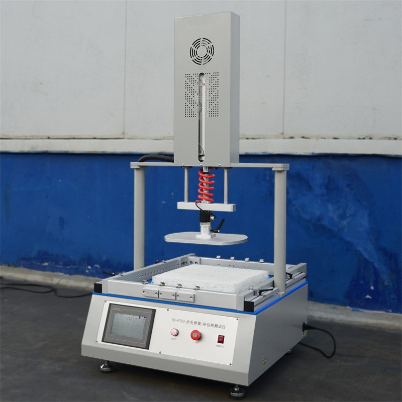 1. 耐久性測試:按照預(yù)設(shè)的壓力條件進(jìn)行重復(fù)按壓測試,周期可預(yù)設(shè)定,到數(shù)自動停止。這項測試主要用于評估彈簧框架和彈簧包在長時間使用后的耐久性能,確保其在日常使用中的穩(wěn)定性和可靠性。