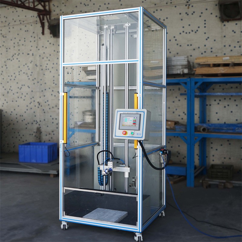 •本機(jī)采用電動(dòng)組件來(lái)進(jìn)行試驗(yàn)高度的調(diào)整,定位快速且精確。用戶可以通過(guò)觸摸屏設(shè)置所需的跌落高度,設(shè)備會(huì)自動(dòng)上升至設(shè)定的高度,操作方便,大大提高了測(cè)試效率。