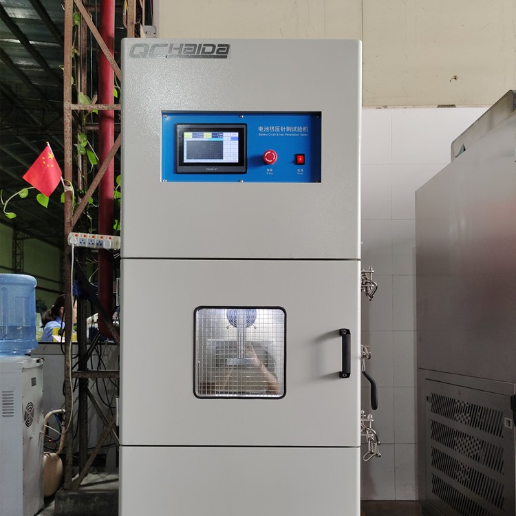 試驗箱的主要功能是在20℃±5℃的環(huán)境溫度下進行測試。測試過程中,首先將接有熱電偶的電池放入通風櫥中,熱電偶的觸點固定在電池的最大表面上,以便實時監(jiān)測電池的溫度變化。接下來,使用直徑2-8mm的無蝕銹鋼針以25mm/s的速度刺穿電池最大表面的中心位置。刺穿后,保持任意時間并觀察測試結(jié)果。如果電池在測試過程中不爆炸、不起火,則視為合格。這款試驗箱適用于多種類型的電池,包括但不限于鋰離子電池、鎳氫電池、鉛酸電池等。通過模擬實際使用中可能遇到的擠壓和針刺情況,試驗箱能夠全面評估電池在這些極端條件下的安全性能。這對于確保電池在各種應用場景中的安全性很重要,特別是在運輸和儲存過程中,防止因意外擠壓或針刺導致的安全事故。